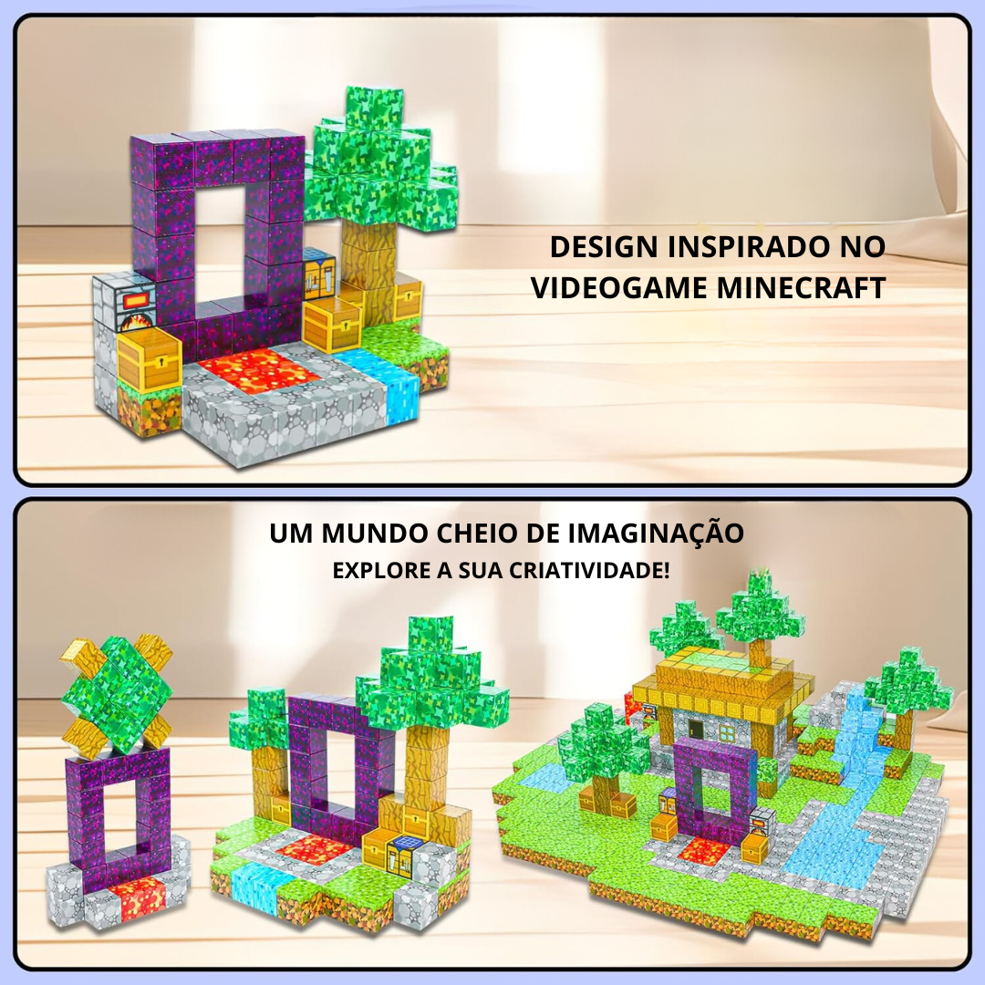 Conexão Magnética e Infinidade de Possibilidades: As peças magnéticas se conectam de forma fácil e segura, permitindo construções dinâmicas e criativas. Deixe seu filho recriar o mundo Minecraft ou imaginar novas aventuras em três dimensões!