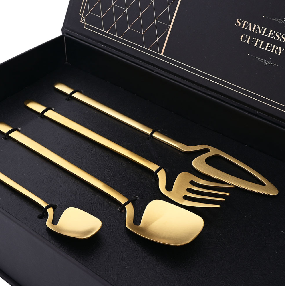 Transforme suas refeições em momentos ainda mais especiais com o jogo de talheres dourados da Ambience Decor. Com acabamento luxuoso e design moderno, ele combina perfeitamente com ocasiões elegantes e também com o dia a dia. Fabricado em aço inoxidável de alta qualidade com banho dourado resistente, é durável, fácil de limpar e resistente à ferrugem.